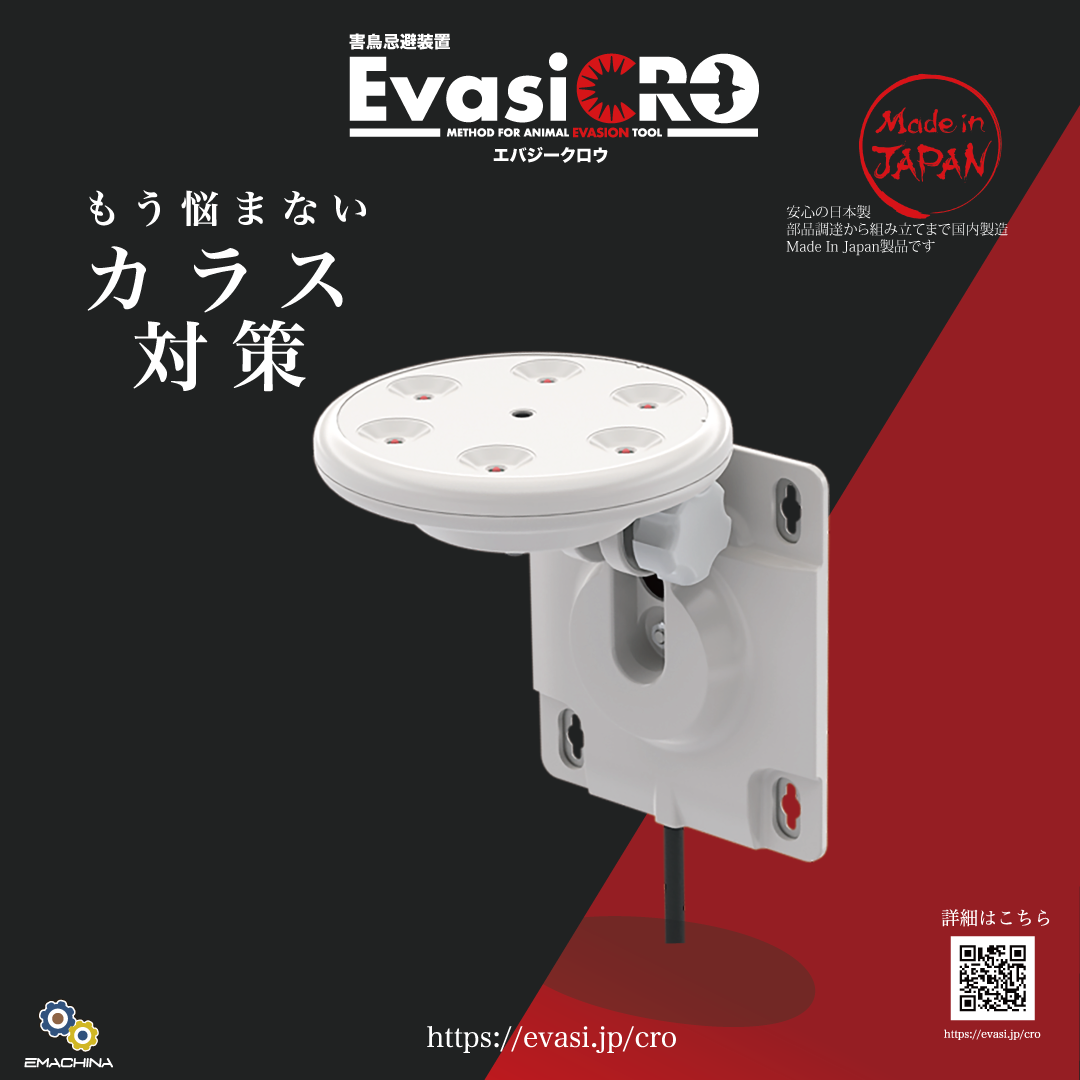 イーマキーナ株式会社と神栄産業株式会社(東京都豊島区、代表取締役 東代 清隆)は、12月1日(水)より、害鳥忌避装置「Evasi CRO(エバジークロウ)」を全国にて発売致します。