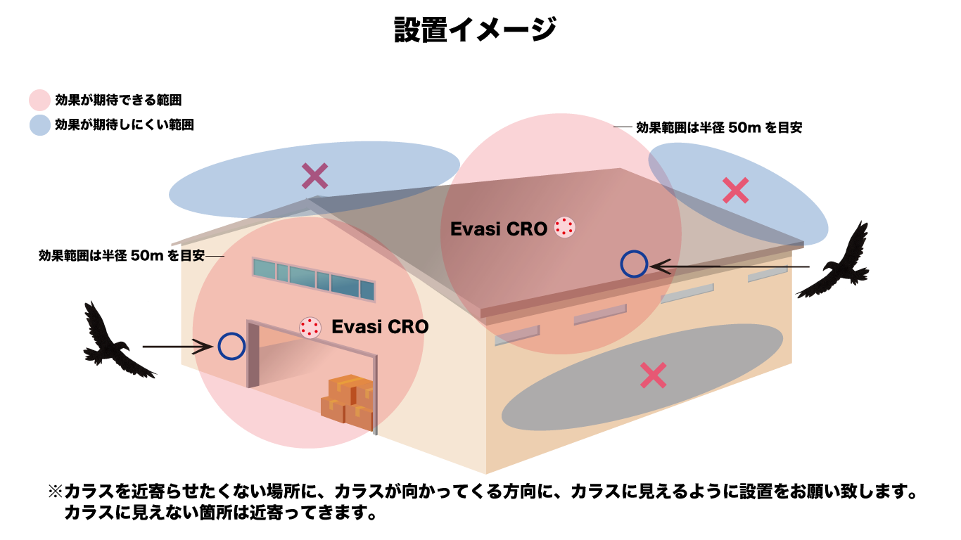 カラスの被害がある場所に設置するだけで効果を発揮します